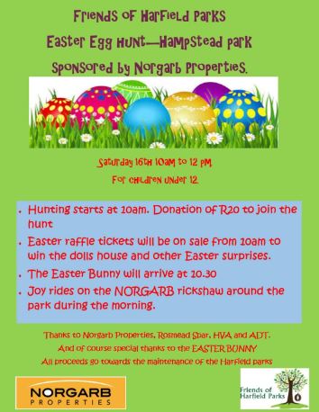 A reminder about the Easter Egg Hunt in Hampstead Park tomorrow. See the poster below for details.