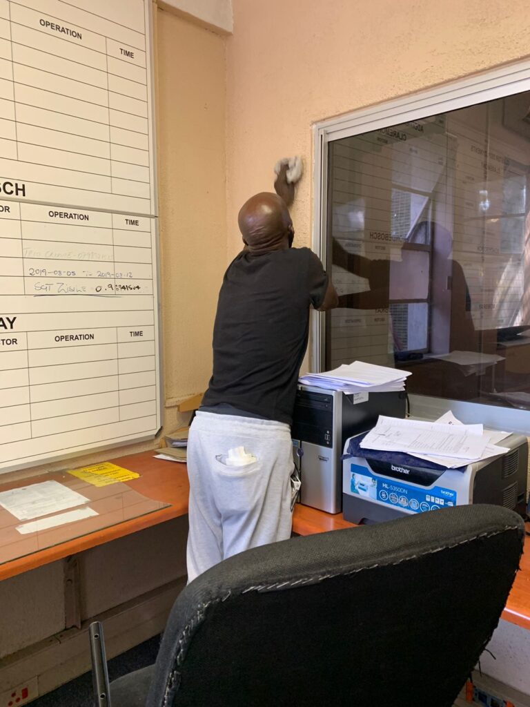One of my first projects was to do a walk around SAPS Claremont with Colonel Louw and Captain Bock. I saw the desperate need for the Station to have a deep clean and to start afresh in a clean work space. The HVCID Committee approved the clean and I booked the date for 16 April.
